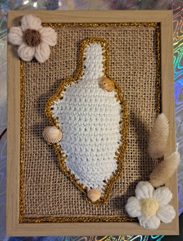 Tableau décoratif unique représentant la Corse, entièrement réalisée au crochet à la main.